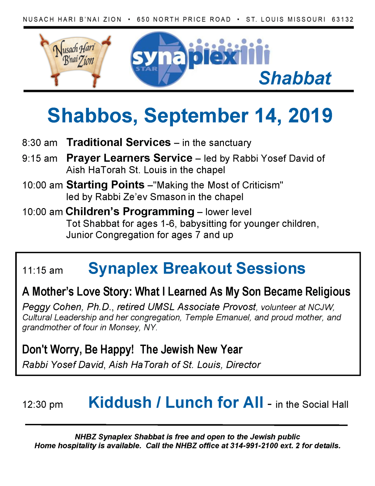 Nusach Hari B’nai Zion Weekly News (Bulletins)